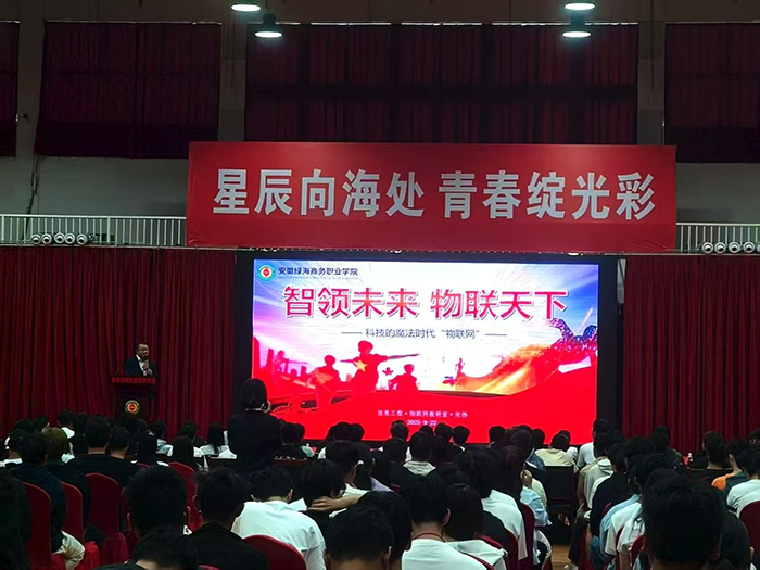“专业是大学学习的根基,是打开科技探索之门的‘敲门砖’”。在议程第三项各专业介绍环节,各专业教研室主任依次登场,为新生精准解读专业特色与发展前景。物联网应用技术专业教研室主任何伟围绕物联网行业趋势、课程体系、就业方向等内容进行详细讲解;计算机网络技术专业教研室主任范锦祯则聚焦网络技术领域的发展蓝图,为新生梳理学习重点与职业规划路径;大数据及软件技术专业教研室主任石磊深入剖析两大专业的课程设置、实践教学安排及行业应用场景;特邀嘉宾、软通动力陆龙飞老师结合企业实战经验,生动介绍了人工智能技术应用专业的前沿动态与就业机遇。各位老师的分享干货满满,帮助新生们清晰掌握了各专业的核心内容,为后续选择专业方向、制定学习计划提供了重要参考。