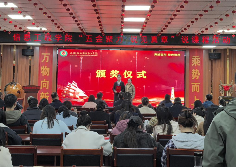 校长助理、信息工程学院院长郭玉堂作总结讲话。他首先对本次比赛的圆满成功表示祝贺,向给予赛事全程指导的教务处及辛勤付出的评委老师们致以诚挚感谢,向获奖教师表示热烈祝贺。他强调,本次 “说课程” 比赛充分展现了学院教师扎实的专业功底、创新的教学思路和务实的育人情怀。课程建设是人才培养的核心环节,是提升教学质量的根本抓手。当前安徽省数字经济产业高速发展,对计算机类技术技能人才的需求持续升级,这既为学院发展带来了机遇,也提出了更高要求。他希望全体教师以本次比赛为契机,认真学习借鉴优秀课程设计经验,在今后的教学工作中持续深化 “岗课赛证” 融合,不断优化教学内容、创新教学方法,把每一门课程都打造成贴合产业需求、深受学生欢迎的 “金课程”。学院将以此次赛事为起点,系统梳理推广优秀成果,进一步完善课程建设激励机制,推动课程改革向纵深发展,为培养更多适配区域产业发展的高素质技术技能人才、构建 “教育链、人才链与产业链” 深度融合的育人格局奠定坚实基础。